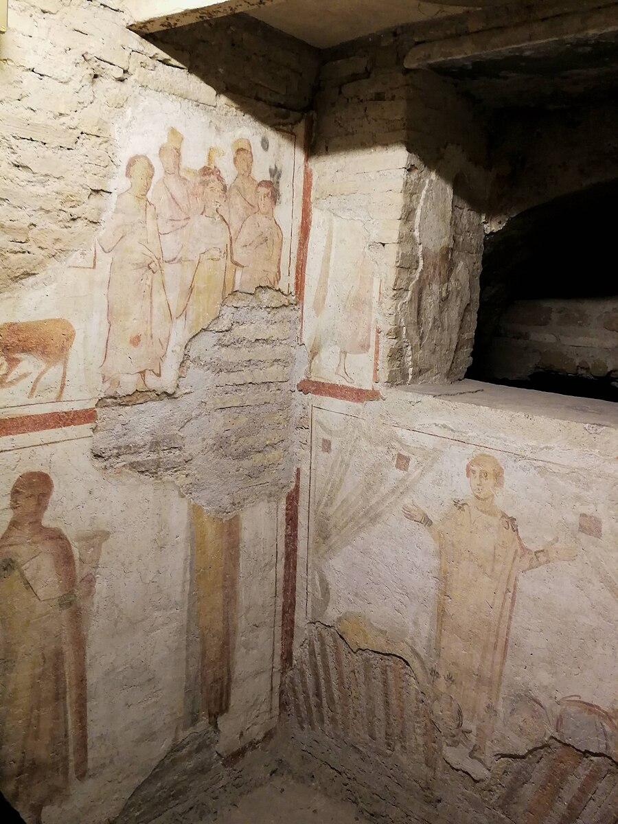 Due to an incorrect cinematographic representation of this historical period, I have often found that many imagine the celebration of these rites to have taken place in catacombs. This completely inaccurate idea is to be dispelled because these environments that nowadays appear as hypogea, were, in the period of persecutions, mixed outdoor cemeteries mainly frequented by pagans.