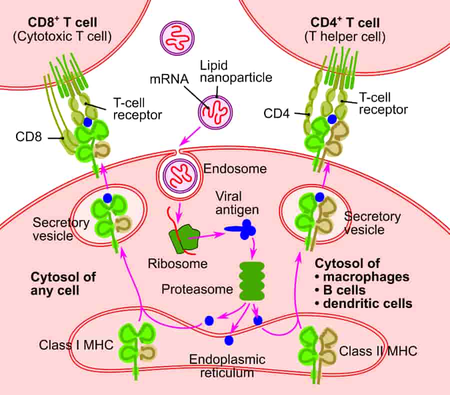 An illustration of the mechanism of action of a messenger RNA vaccine. Photo: Jmarchn