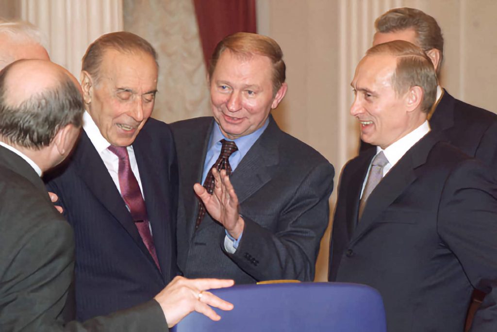 President Vladimir Putin with Ukrainian President Leonid Kuchma, in the centre, and Azeri President Heydar Aliyev before an expanded meeting of the CIS Council of Heads of State. CC BY 4.0