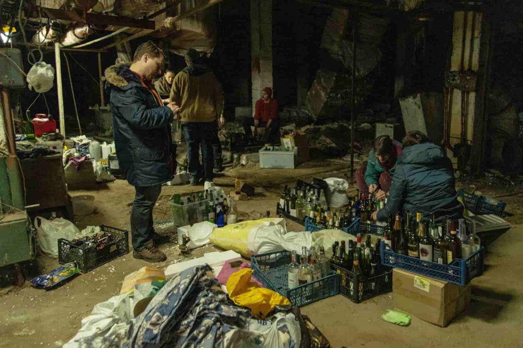 Civilians in Kyiv gather in a basement to make Molotov cocktails, 25 February. Photo: Yan Boechat/VOA