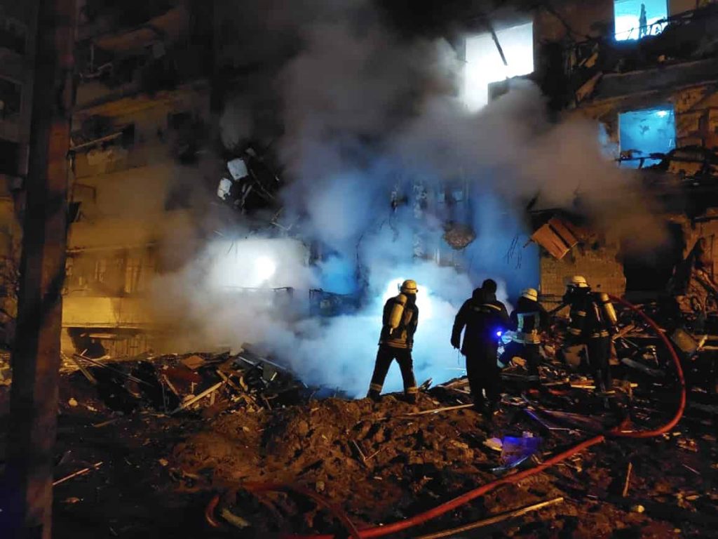 An apartment block in Kyiv (Oleksandr Koshyts Street) after shelling, 25 February. Photo: Kyivcity.gov.ua