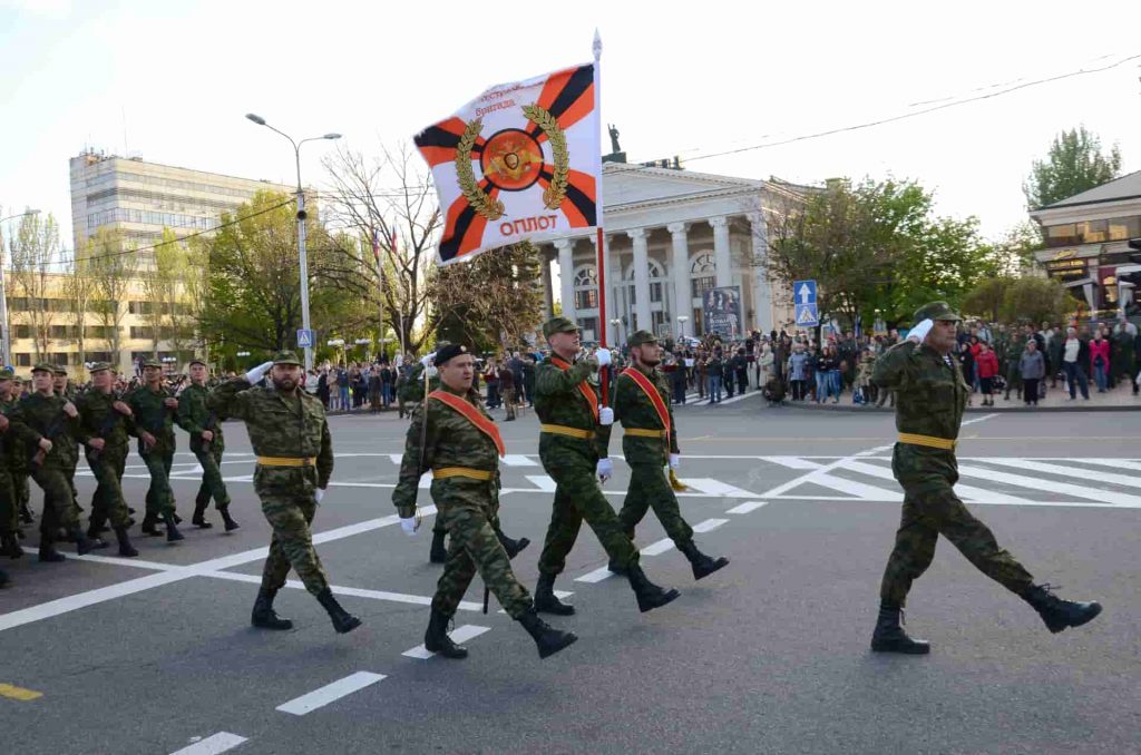 Russian separatist forces, Oplot Brigade, during a rehearsal for the 2015 Victory Day parade. CC BY-SA 3.0
