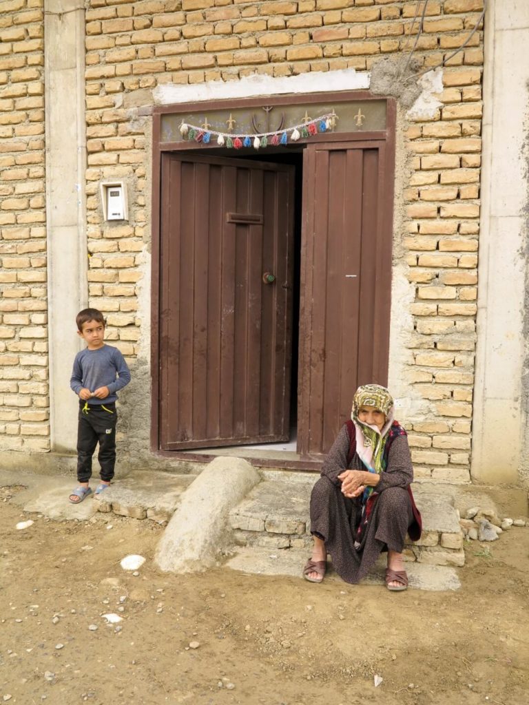 A Turkmen woman resting outside her kitchen that opens to the road. She later invited me to see her house, which is more than 150 years old.