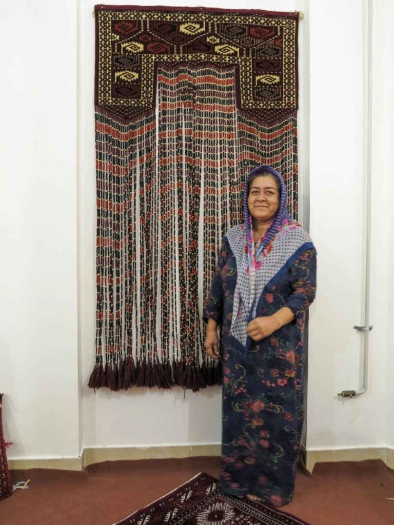 Malik Banoo is an artist who enthusiastically invited me to take a picture of a wall rug that she had just finished weaving. Many Turkmen women weave carpets and Kilims, but very few agree to have their pictures taken.