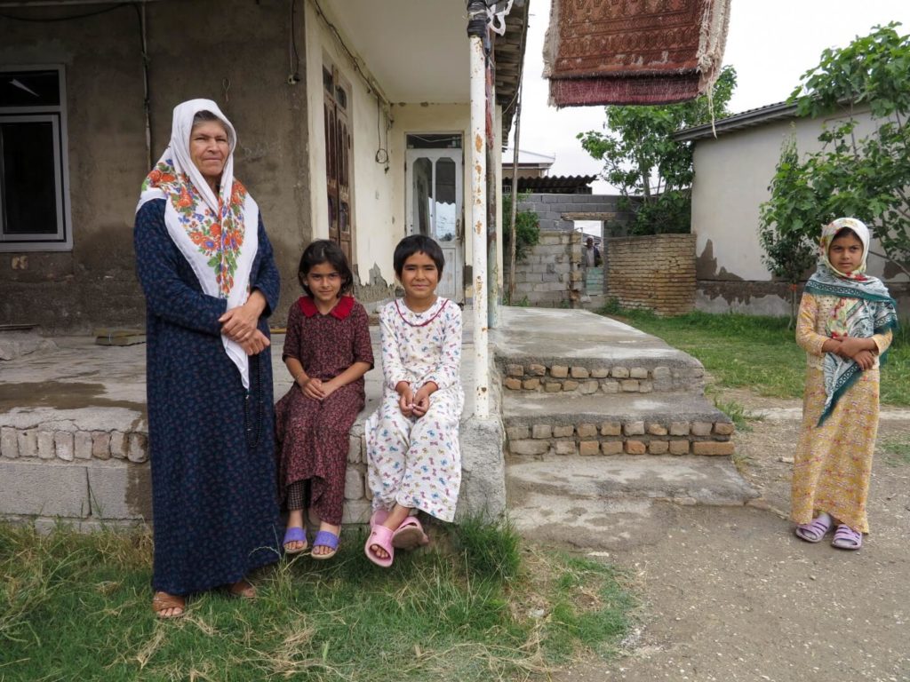 An old woman and her grandchildren in beautiful Turkmen dress wear. Even though Turkman in Iran make beautiful rugs and are wonderful artists, they still live in extreme poverty.