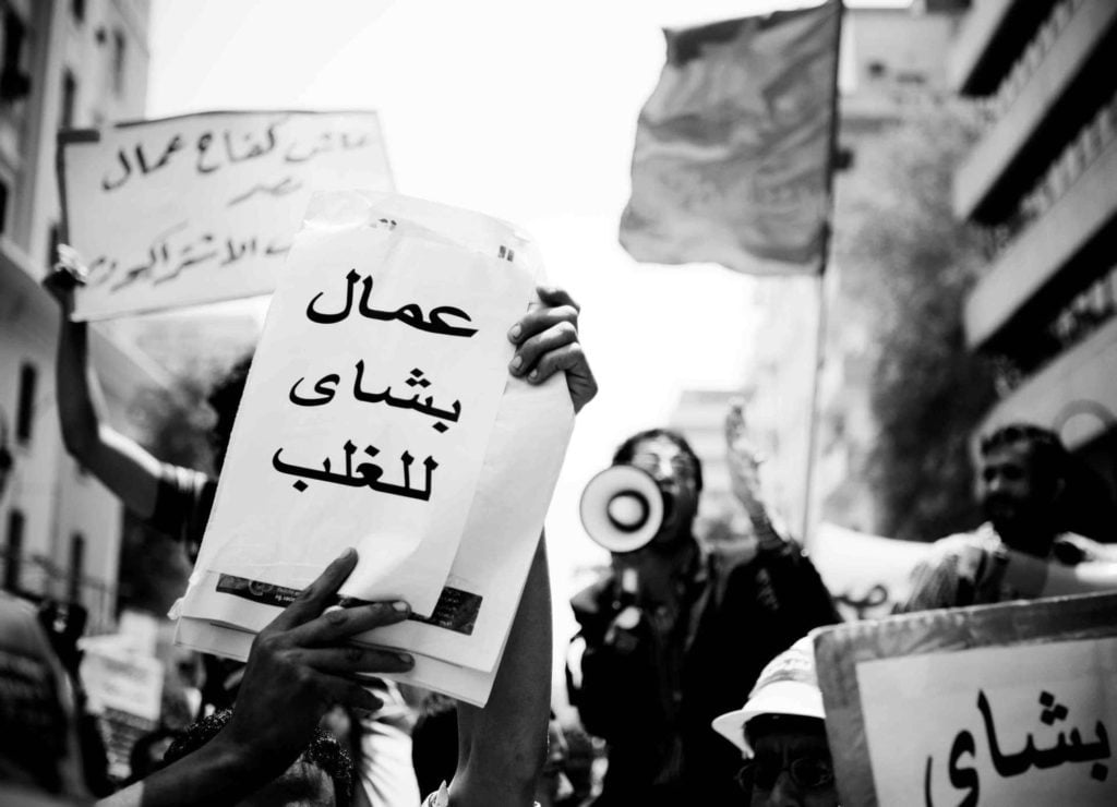 JEWISH AND ARAB WORKERS MARCHING THROUGH THE STREETS IN TEL AVIV DURING THE FIRST OF MAY PARADE IN THE TOWN.