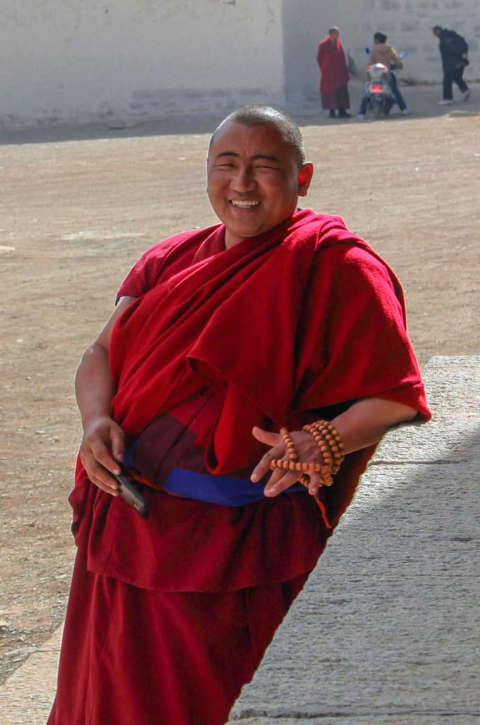 A monk from Labrang Monastery in Xiahe takes a break from a football game. © Jonna Lappalainen