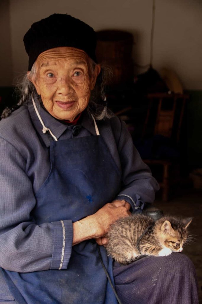 A woman with her cat in the town of Luobiao.© Jonna Lappalainen