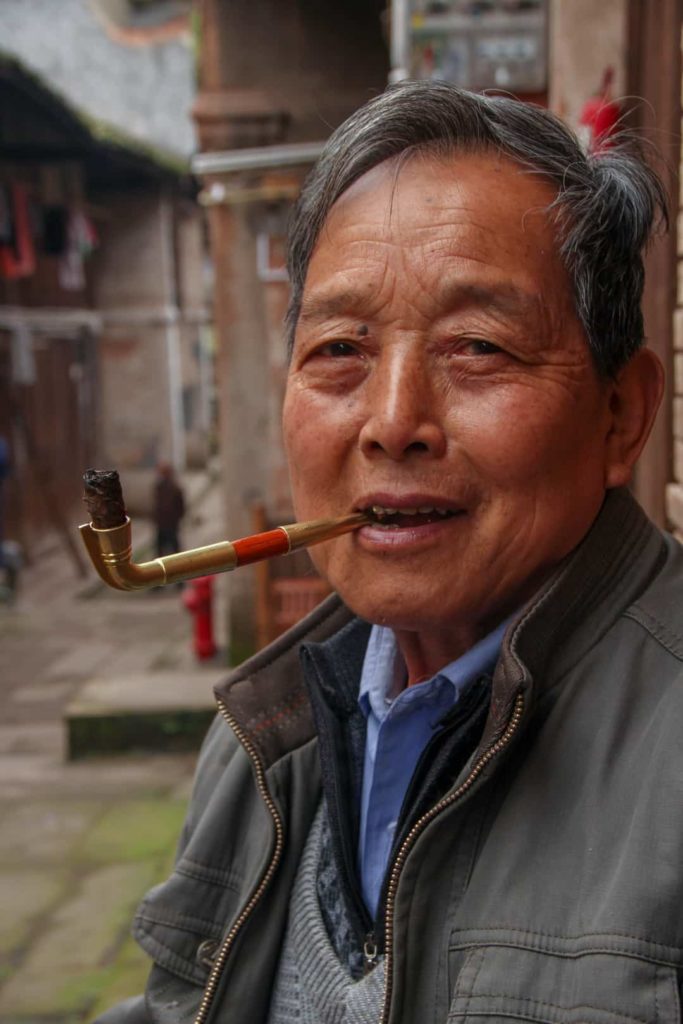 A man from the ancient town of Fubao enjoys a sunny spring day outdoors. © Jonna Lappalainen