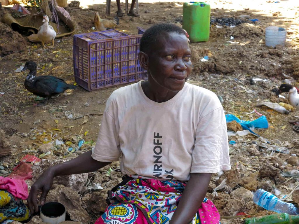 A Kenyan woman surrounded by plastic bottles at her home. © Anahita Ahmadi