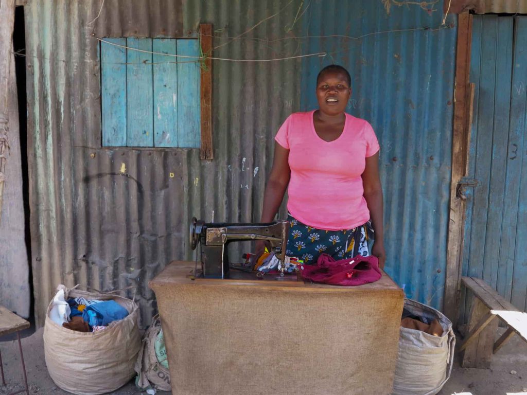 A female tailor living in her one-roomed house made with corrugated metal sheets. © Anahita Ahmadi