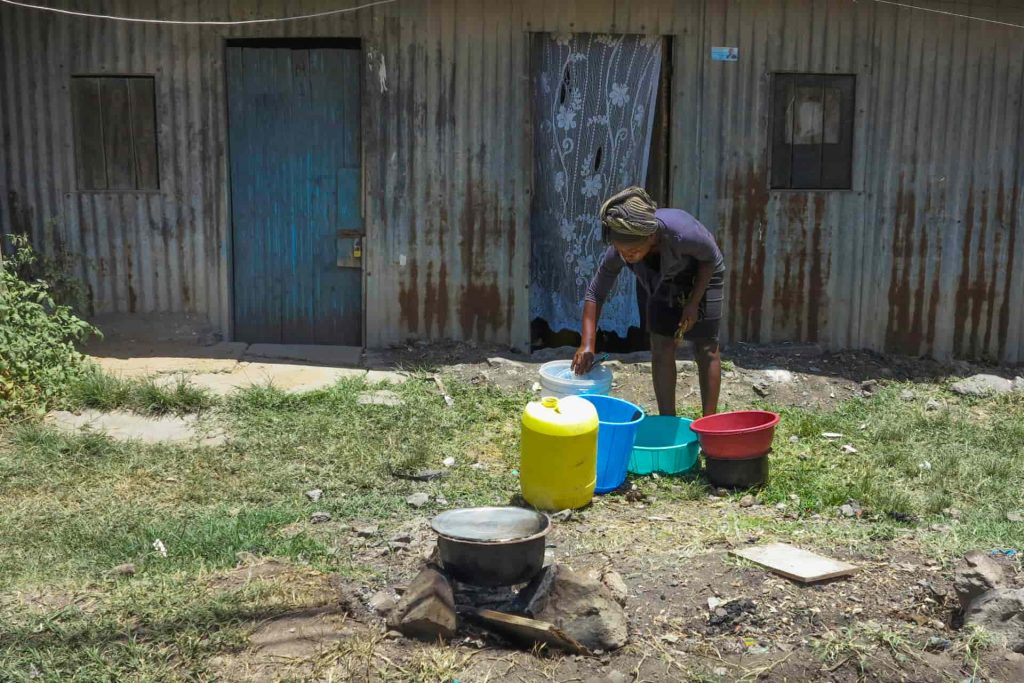 A woman is preparing food outside her house. Due to a lack of living facilities in Gyokucho, which is located on the outskirts of Nairobi, life is very difficult. © Anahita Ahmadi