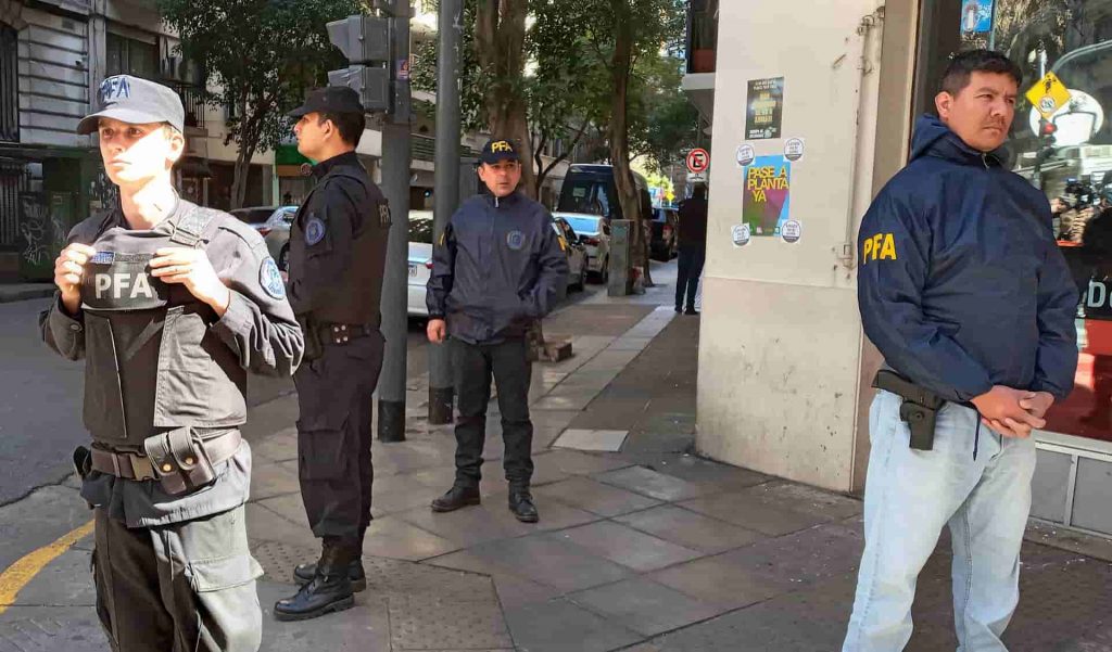 Officers from the Federal Police stand guard outside the house of Cristina Fernández de Kirchner the day after the assassination attempt. © CC 4.0