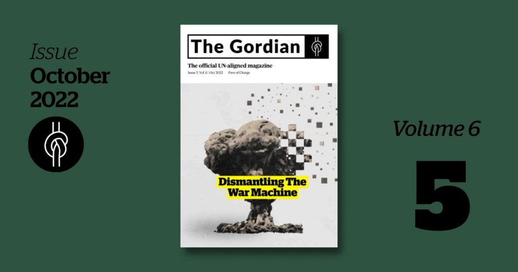 In the fifth issue, we wrote about the futility of war and how to make it redundant. People and nations may disagree, and they may commit crimes, but these antagonisms can be resolved in countless ways. War should never be an option.